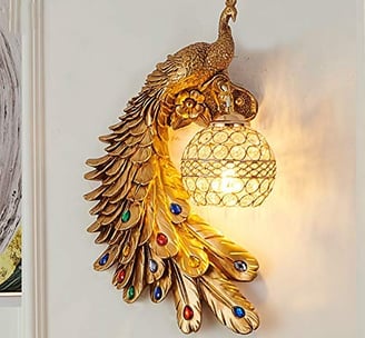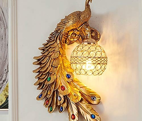 Peacock Wall Lamp LED Night Lights for Home Decoration- Gold