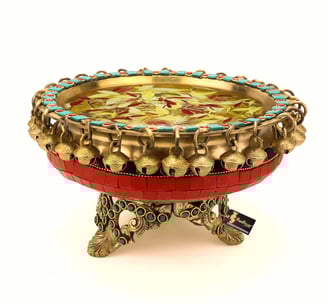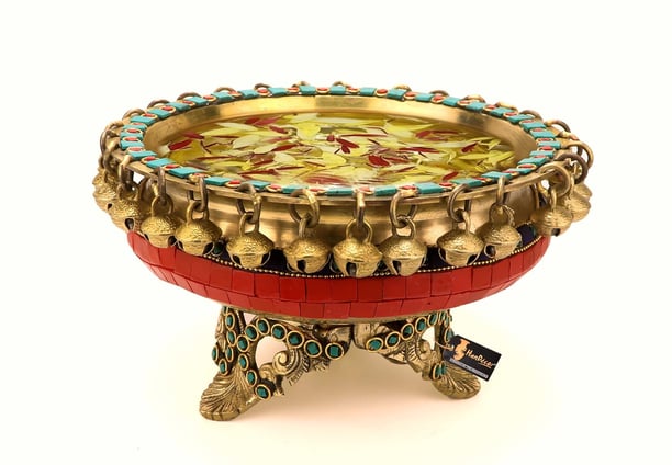 8 Inches Urli Bowl on Ethnic Carved Legs for Home Decor, Material - Brass, Standard, Pack of 1, 1 L