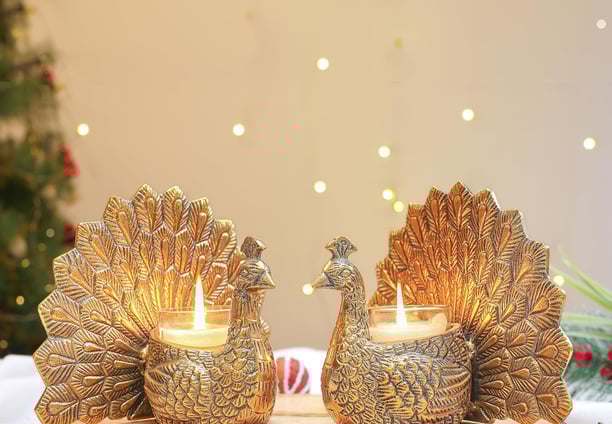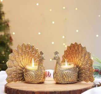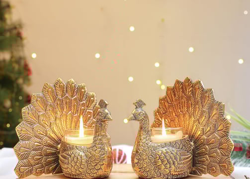 Figurine for Good Luck and Love | Candle Holder for Home Dcor Tabletop Living Showpiece for Valentine's Day, Birthday(Scented Glass Votive Candle Included), Gold